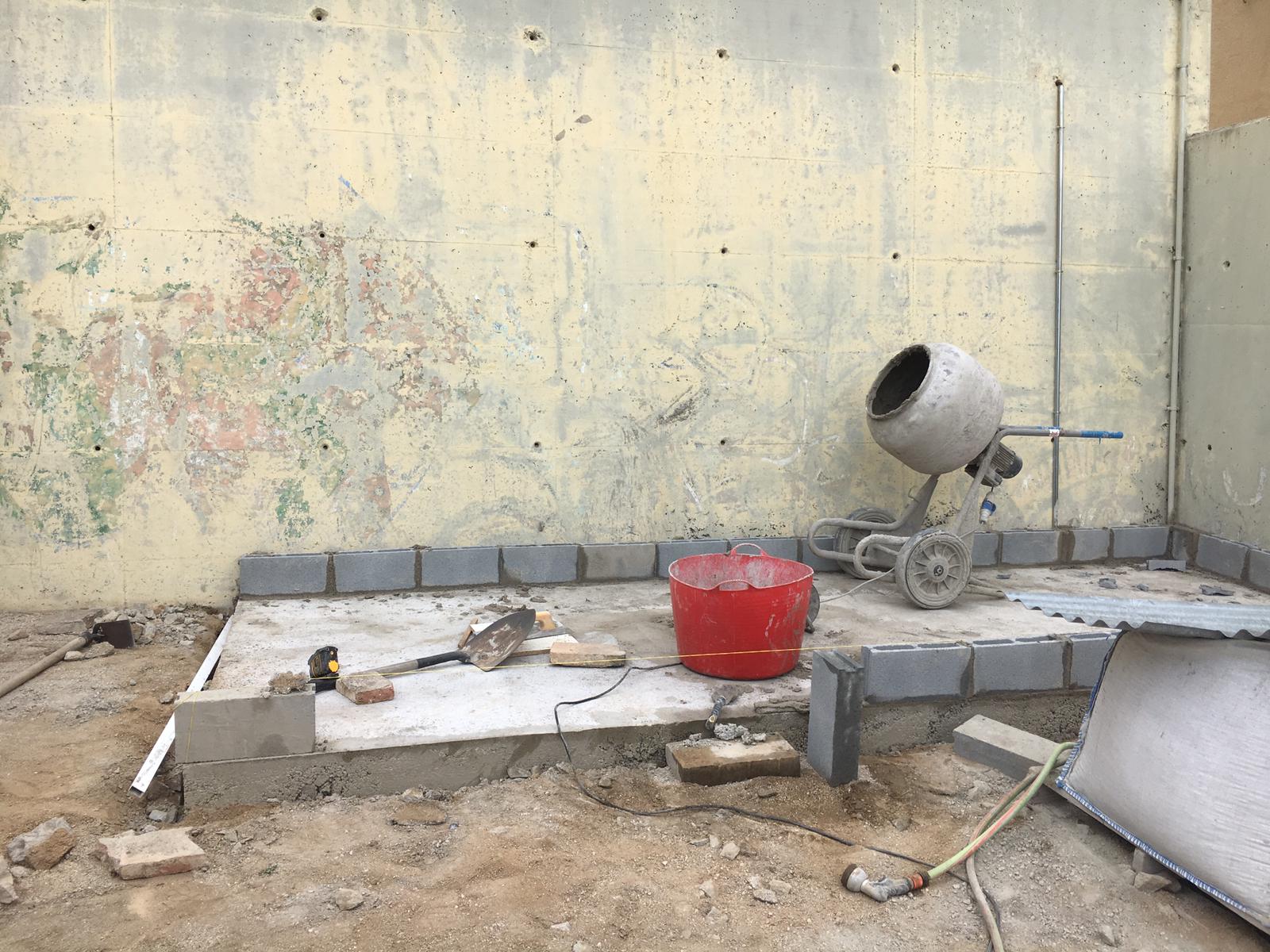 A principis de setembre, es fa la base de formigó per col·locar la caseta i es comença a construir el mòdul de fusta.