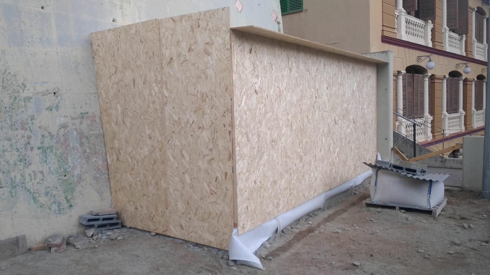 Durant els mesos de maig i juny, es treballa la proposta i s'opta per col·locar un mòdul de fusta prefabricat que faci de magatzem a la part superior del pati del Casino.