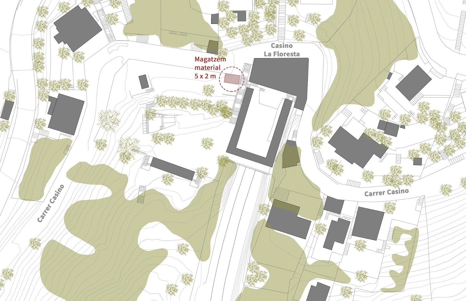 - Objectiu: Equipar el Casino de La Floresta d'un magatzem per guardar el material del Consell de Barri que s’utilitza en diferents activitats i esdeveniments.