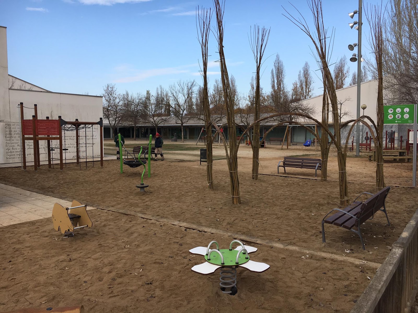 A principis de desembre, ja hi ha la pèrgola vegetal i tots els jocs instal·lats i a punt per utilitzar. Només falta acabar de relligar les branques de la pèrgola.
