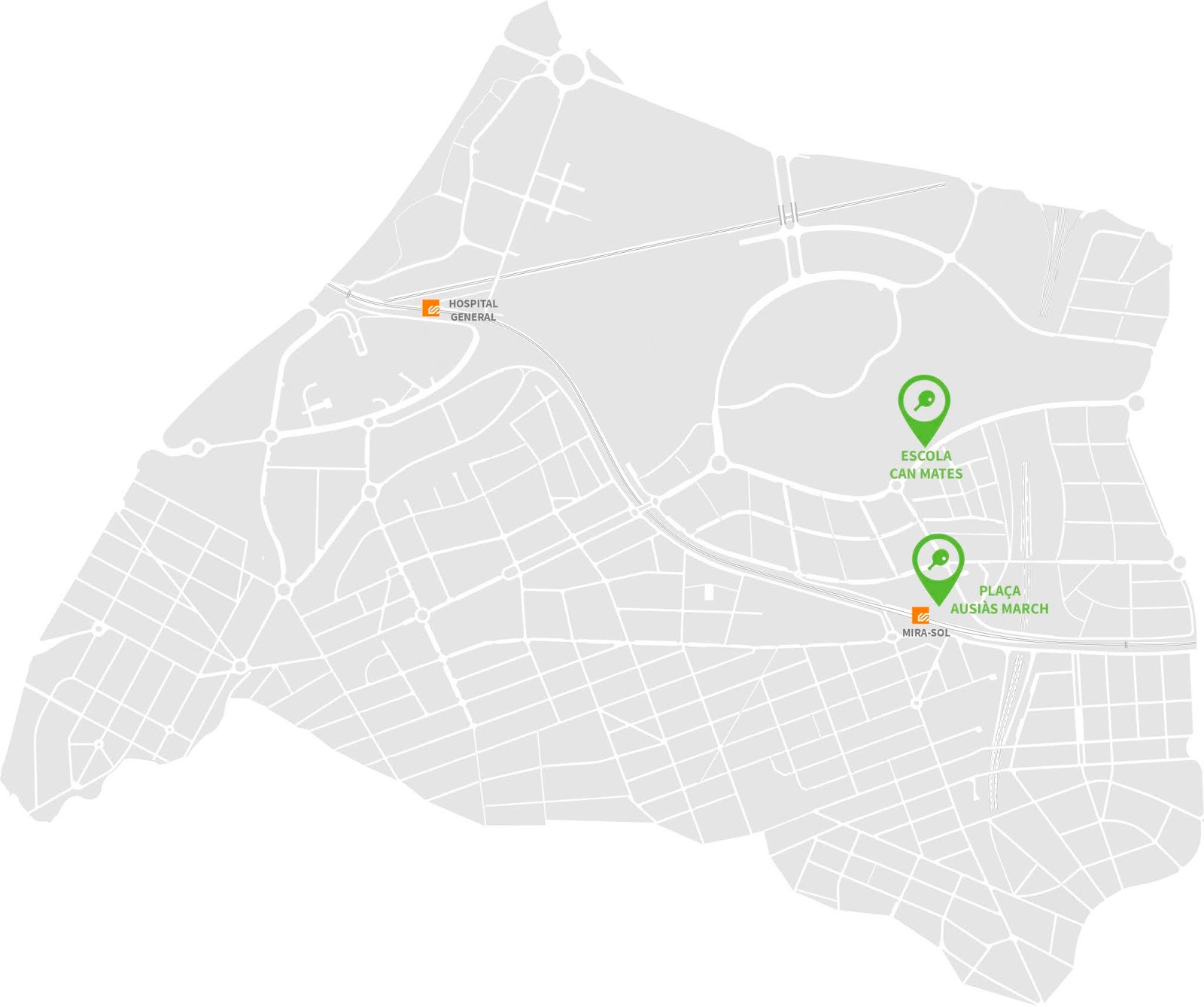 - Ubicació: Plaça Ausiàs March i al costat de l'Escola Turó de Can Mates.