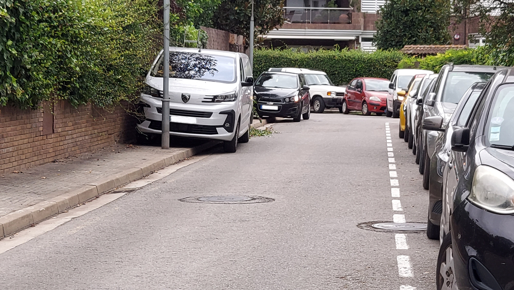 És habitual trobar vehicles ocupant tota la vorera i part de la calçada al cr. Pla de la Pagesa.