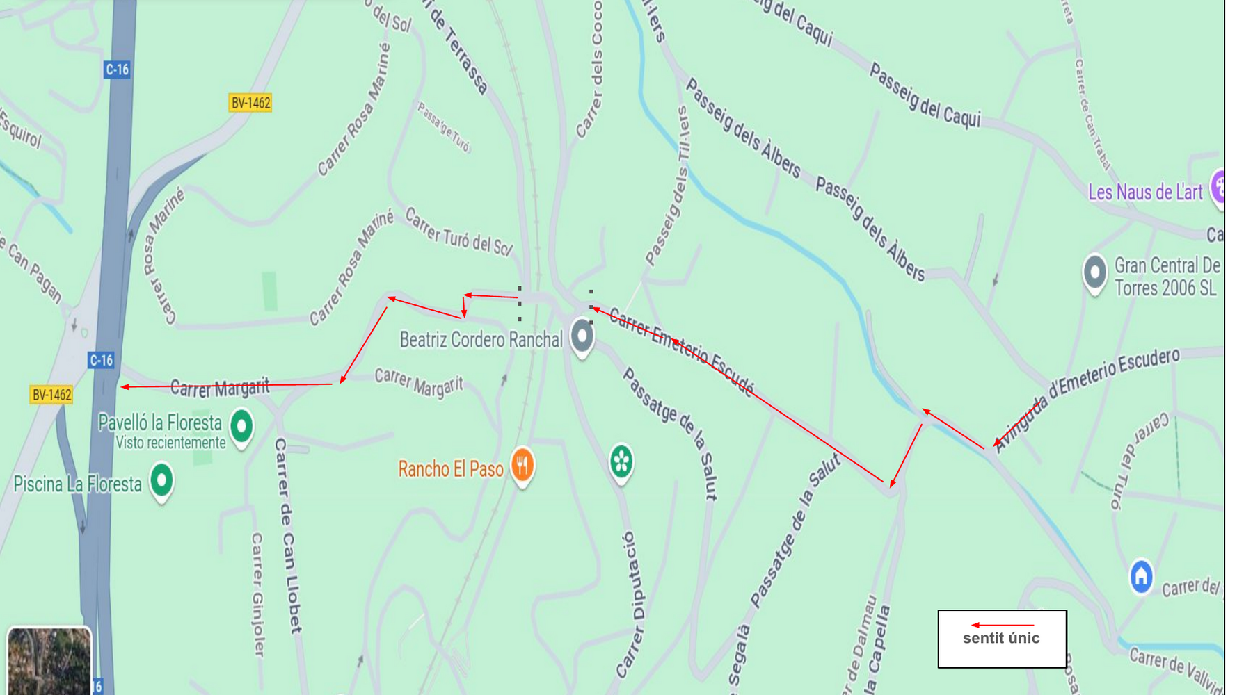 ✅ Sentit únic des d’Emeterio Escudero amb passeig dels Albers fins la BV-1462 (Carretera Vallvidrera), i carrers Nou de la Floresta i Margarit.