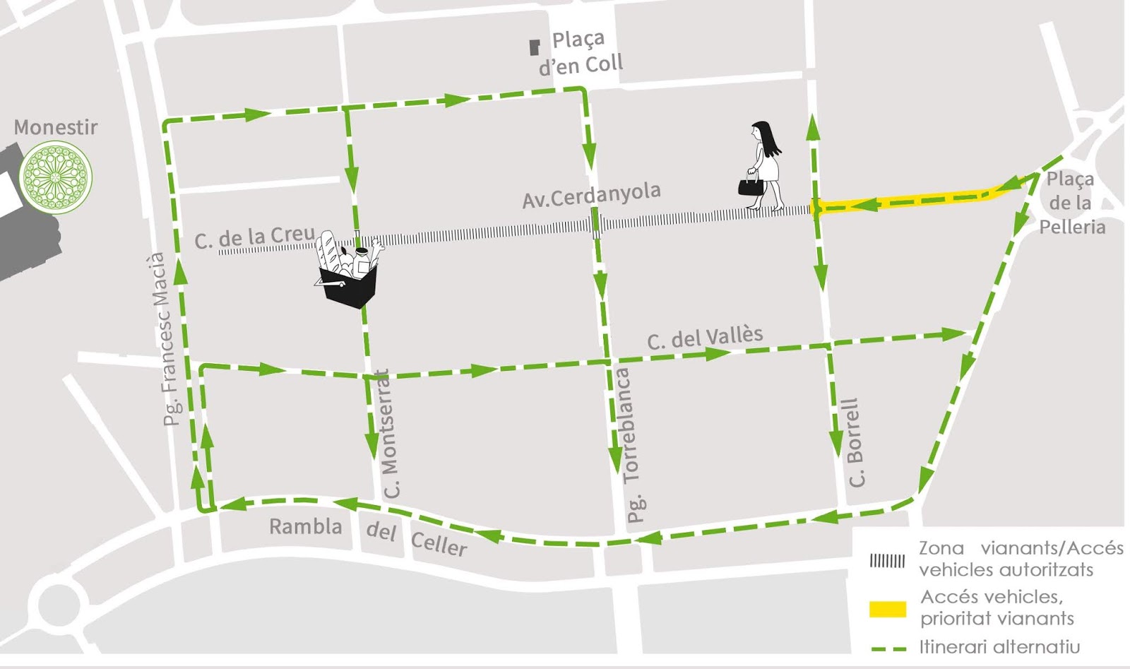 - La resta de vehicles es desviaran per la Rambla del Celler, el carrer Vallès, el passeig Francesc Macià i el carrer Orient.