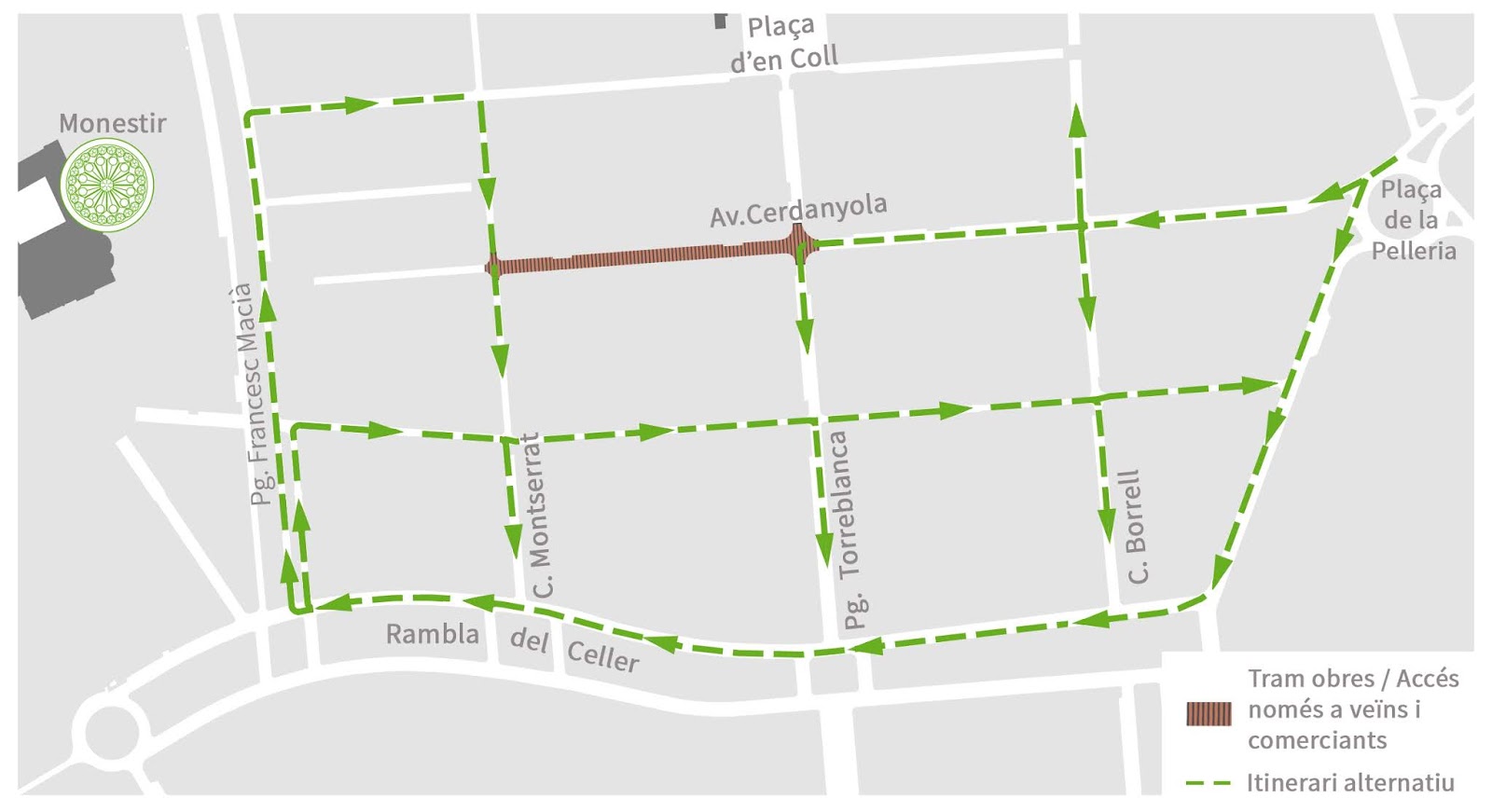 - La resta de vehicles es desviaran pel carrer Borrell o per la Rambla del Celler, el carrer Vallès, el passeig Francesc Macià i el carrer Orient.
